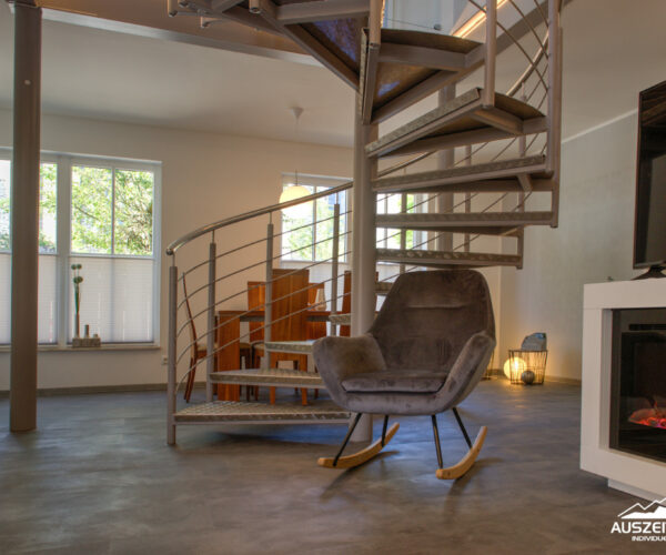 Herzlich willkommen in der traditionsreichen Bergbaustadt Elbingerode – wer offenes Wohnen mag, wird sich im „Ferienloft am Steinweg“ ganz sicher wohl fühlen. Das im Juli 2020 fertiggestellte Ferienappartement für 2-6 Personen ist im Erdgeschoß barrierefrei zugänglich . Nach einem Windfang mit Garderobe erwartet Sie ein großzügiger offener Wohn- & Kochbereich mit Eckcouch, Essplatz, Elektrokamin, Flat-TV – & HIFI – Anlage. Neben dem Wohnbereich liegt ein Schlafraum mit Boxspringbett, Flat-TV und großem Kleiderschrank, sowie ein Bad mit Walk-In Dusche. Vom Erdgeschoß führt eine Wendeltreppe in einen Wohn- & Galeriebereich mit Sitzgruppe und einer Spielecke für unsere kleinen Gäste sowie Schmink- bzw. Schreibtisch. Von der Galerie gelangen Sie in das 2. Schlafzimmer mit Boxspringbett, Flat-TV und Kleiderschrank sowie in ein 3. Schlafzimmer mit 2 Einzelbetten. Außerdem befindet sich Im Obergeschoß ein weiteres Badezimmer. Wir bieten unseren Gästen kostenfreies W-LAN mit DSL 100 Internet-Flat. Parken können Sie direkt vor dem Objekt auf der Straße oder dem gebührenfreien Parkplatz. Das „Ferienloft am Steinweg“ liegt im Zentrum des staatlich anerkannten Erholungsortes Elbingerode gegenüber der Stadtkirche St. Jakobi. Ausstattung : Küche mit Kühl-/Gefrierkombination, Ceran-Kochfeld, Geschirrspüler, Backofen, Mikrowelle, Kaffee-Vollautomat, Wasserkocher, Toaster / Kinderhochstuhl, Reisebett / Bettwäsche, Handtücher, Fön / WLAN , 3 Flat-TV, HIFI-Anlage